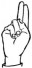 На ћирилици написано ШАЛЕ ПАЉЕВШТИЦА састоји се из 14 слова [?]. Исписано ћириличном једноручном азбуком за глувонеме: